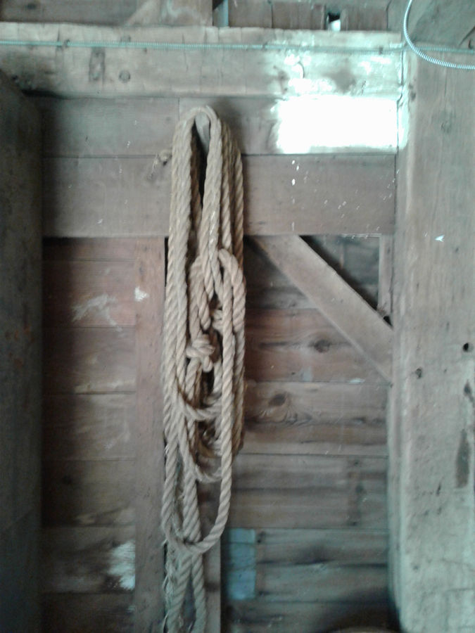 inside and the bails of hay would be unloaded into the loft. The only inside access to the loft is